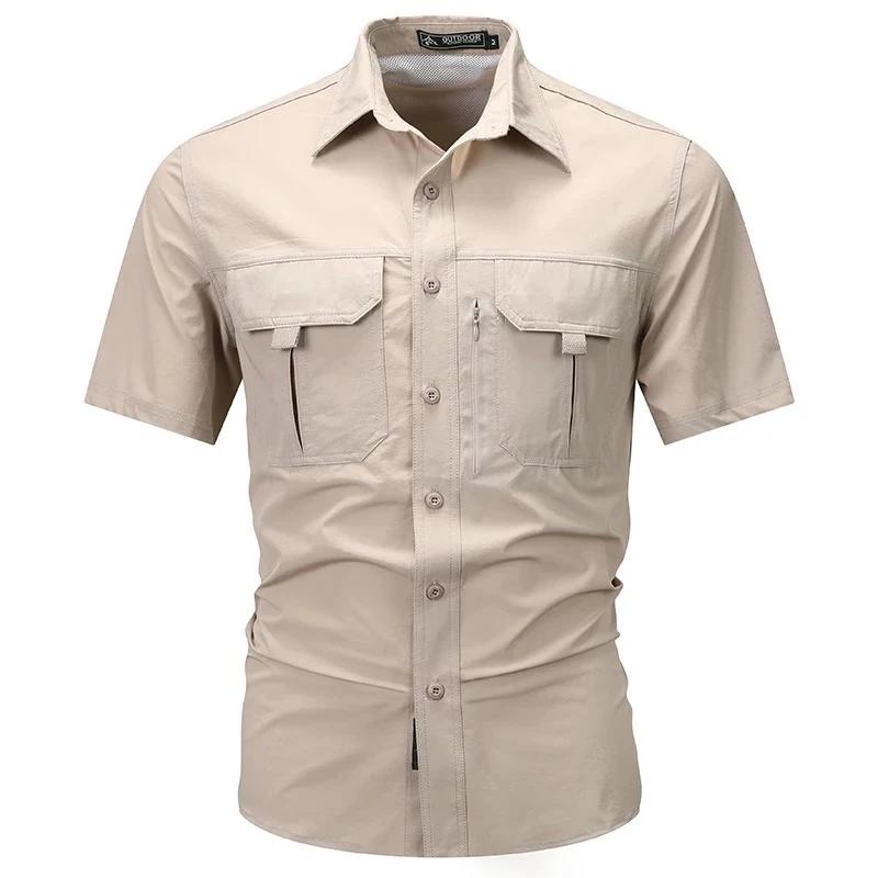 Летняя мужская рубашка с коротким рукавом, мужская дышащая тактическая рабочая рубашка, повседневная, для активного отдыха, быстросохнущая, с несколькими карманами, для кемпинга, карго