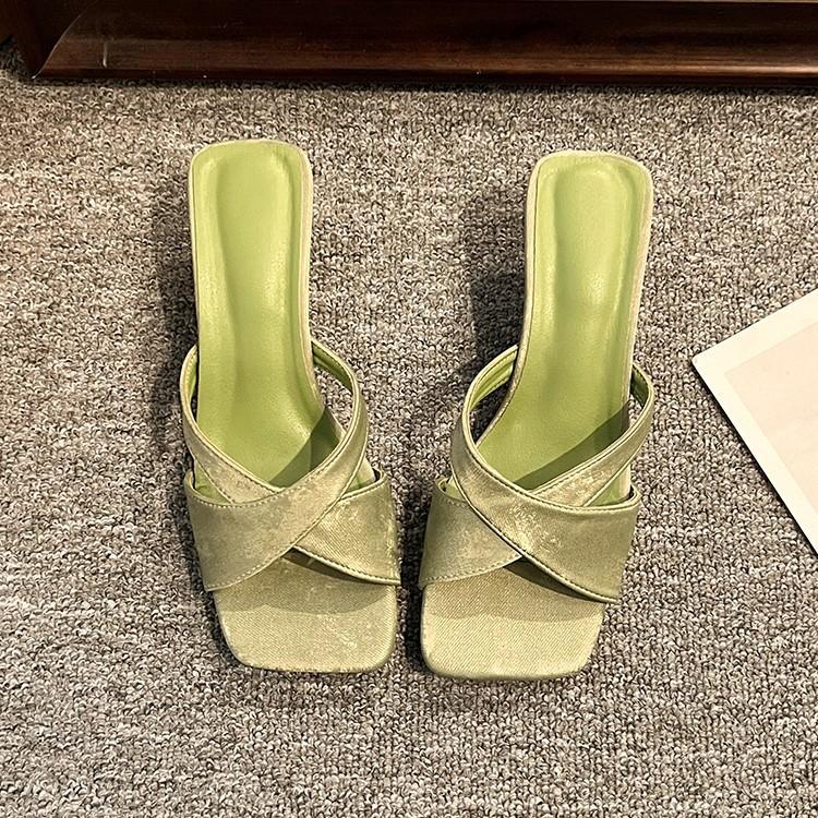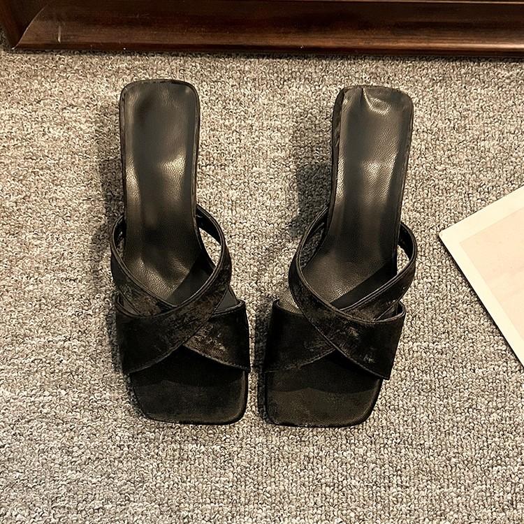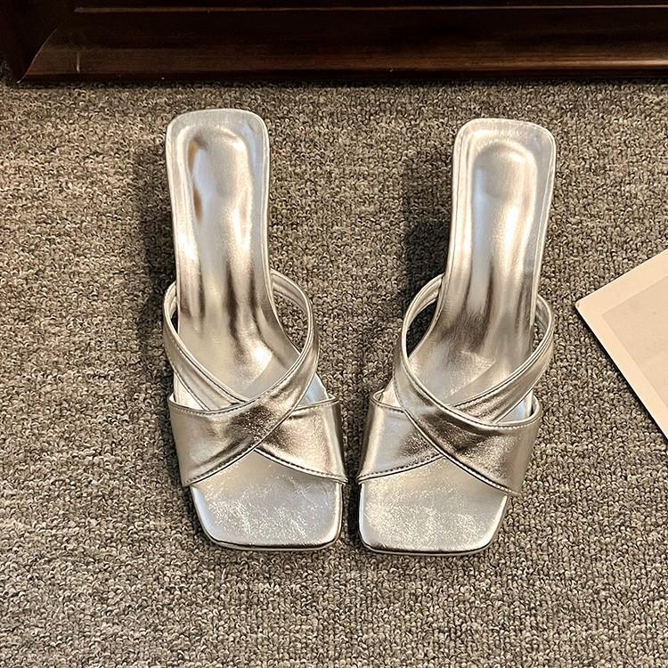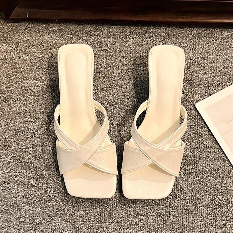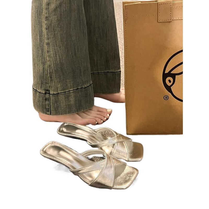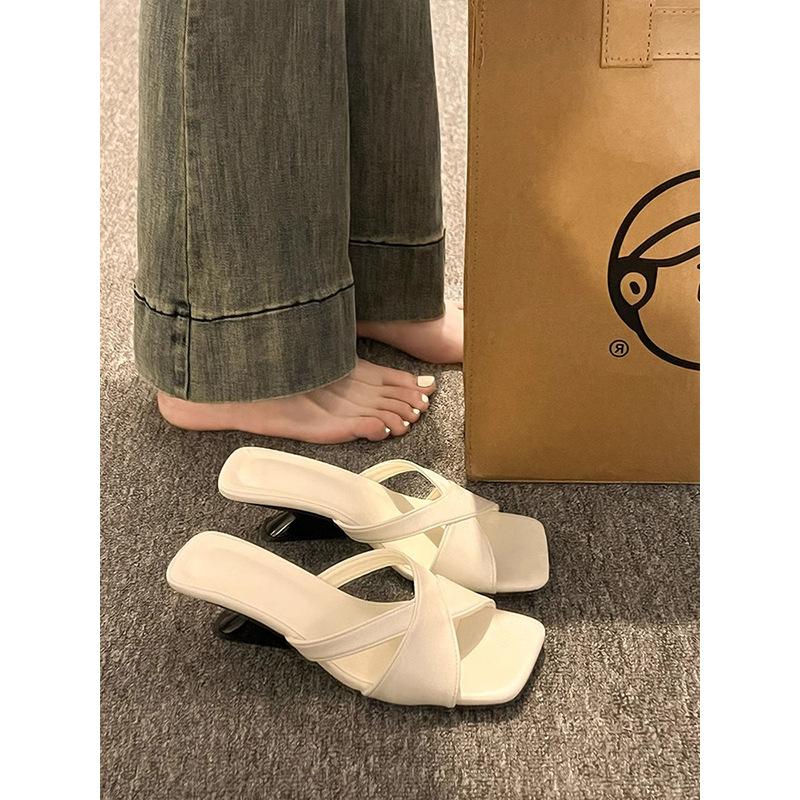 Нишевые шлепанцы на высоком каблуке женская обувь лето 2025 новые универсальные сандалии с квадратным носком для улицы
