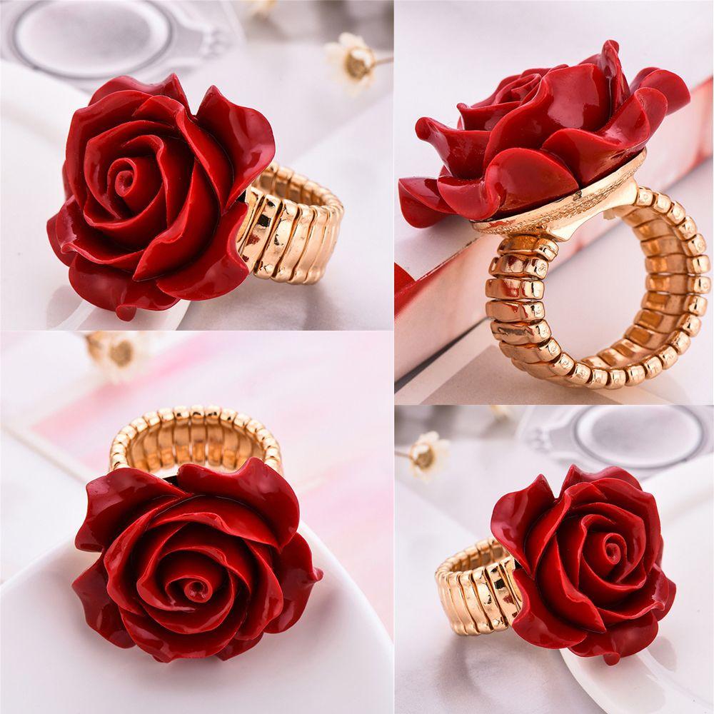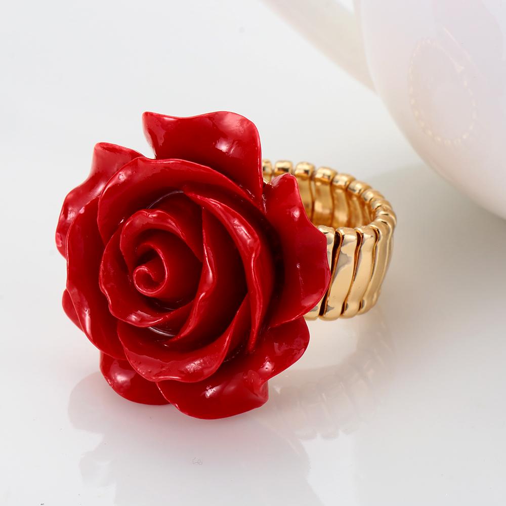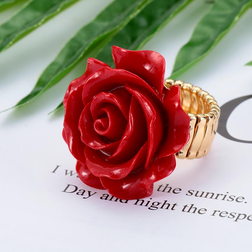 Новая Мода Регулируемое Заявление Свадебной Вечеринки Кольцо с Розой из Резной Смолы