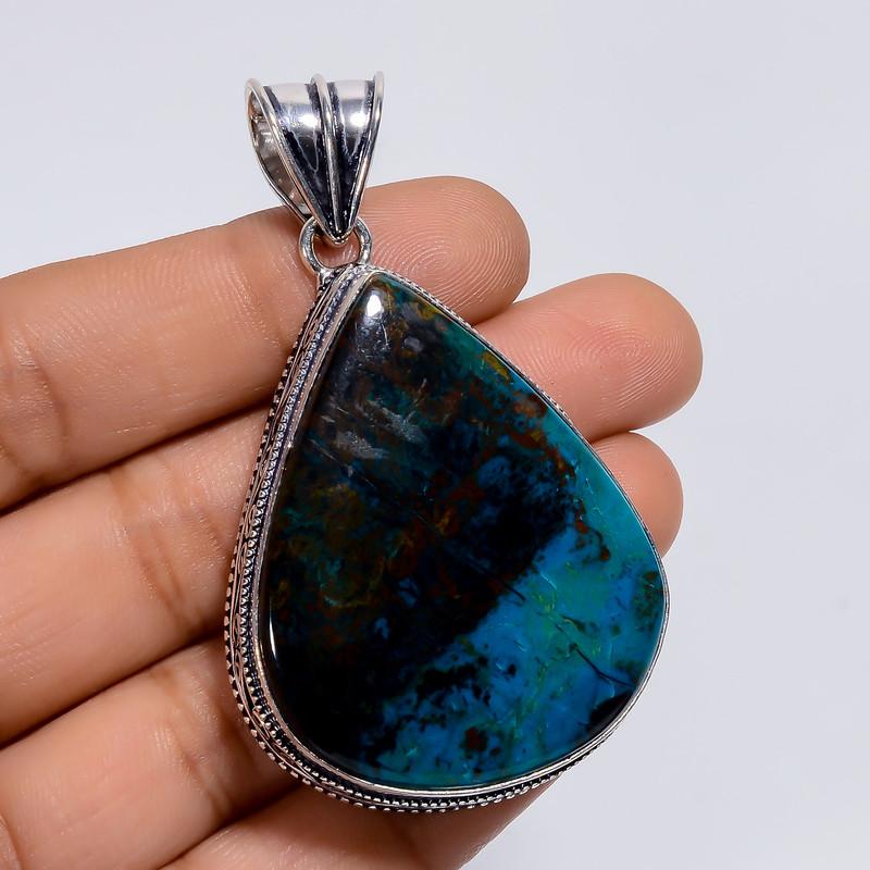 Exclusive Top Grade Qualite 100% Natural Azurite Pear Shape Vintage Style Handmade Jewelry 925 Steling Silver Plated Pendant 2.4" WSJ-4865