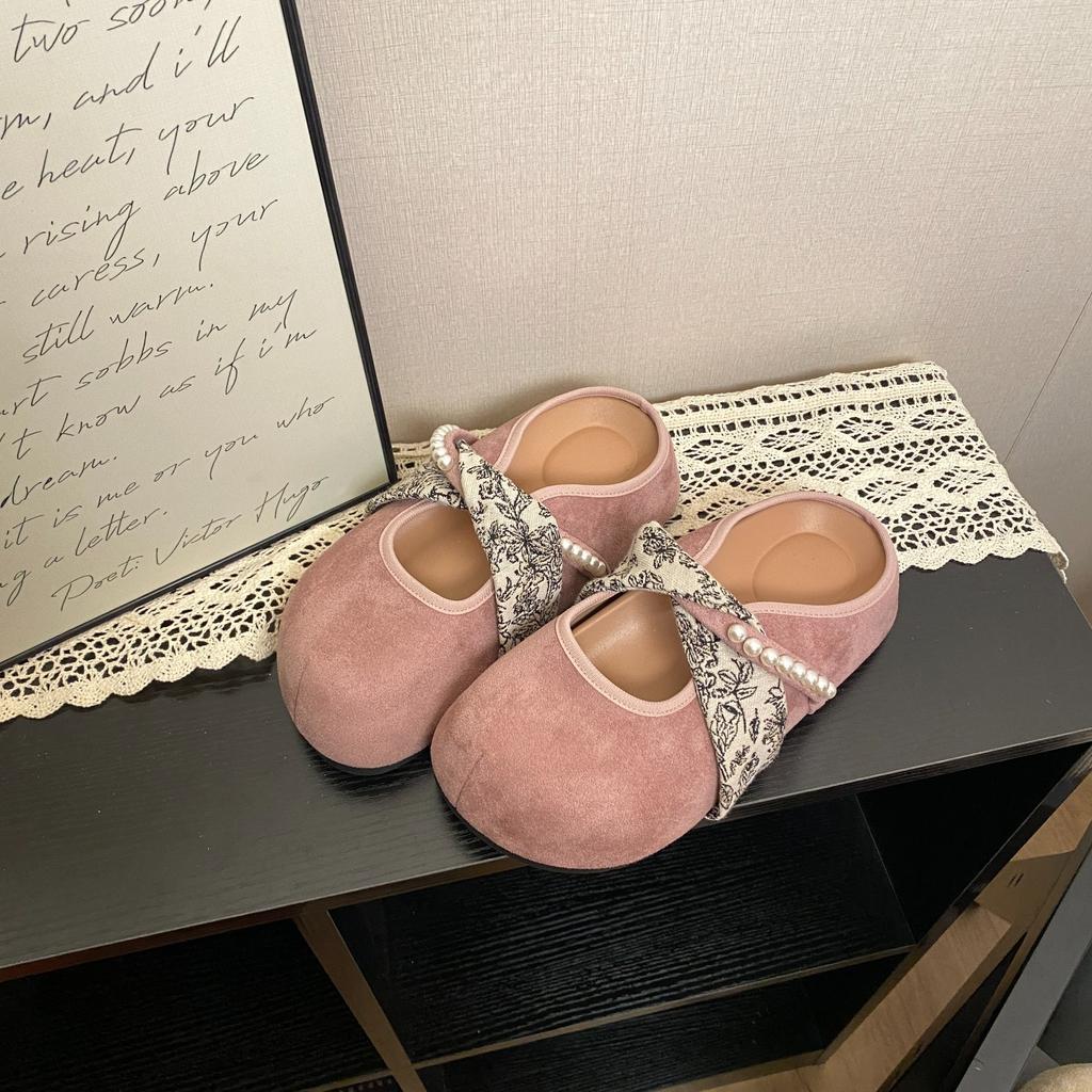 Женские одинарные туфли на плоской подошве 2025 новая весна и осень универсальная модная обувь Мэри Джейн с круглым носком и неглубоким вырезом, полушлепанцы
