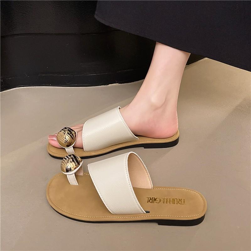 Женские летние шлепанцы с квадратным носком и металлической пряжкой, на плоской подошве, тонкие, с индивидуальным дизайном, с перемычкой между пальцев, женская обувь