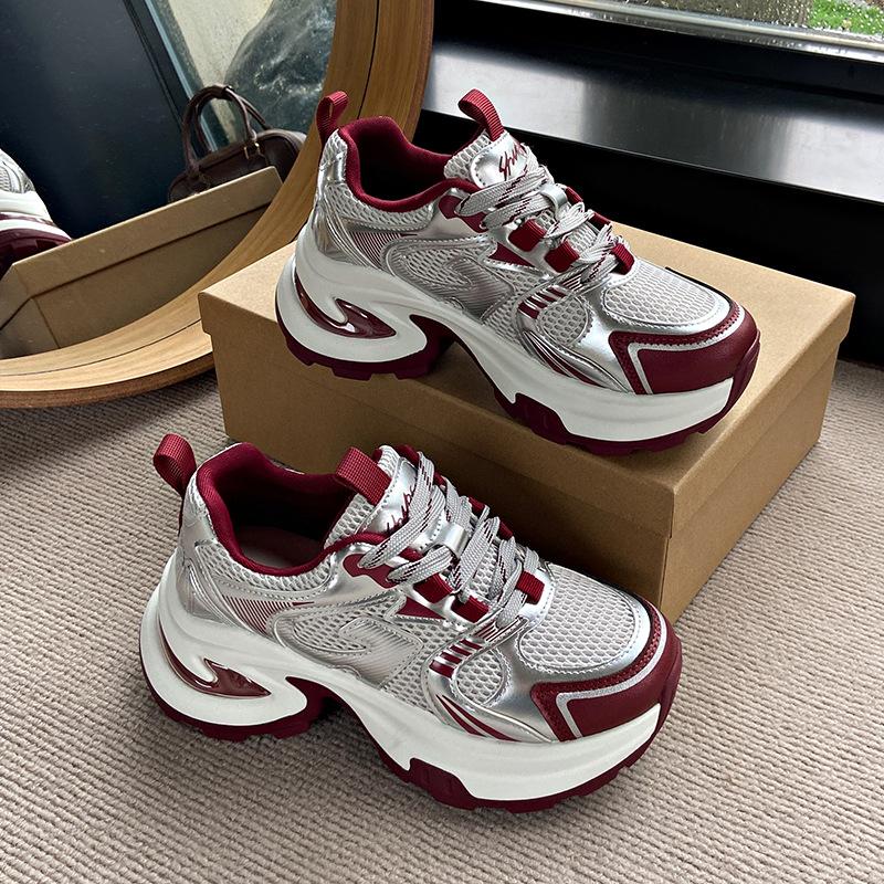 Серебристые кроссовки на толстой подошве, увеличивающие рост, женские, новинка 2025 года, весенне-осенние, маленькие, повседневные, спортивные женские туфли — купить товар онлайн с бесплатной доставкой по всему миру!
