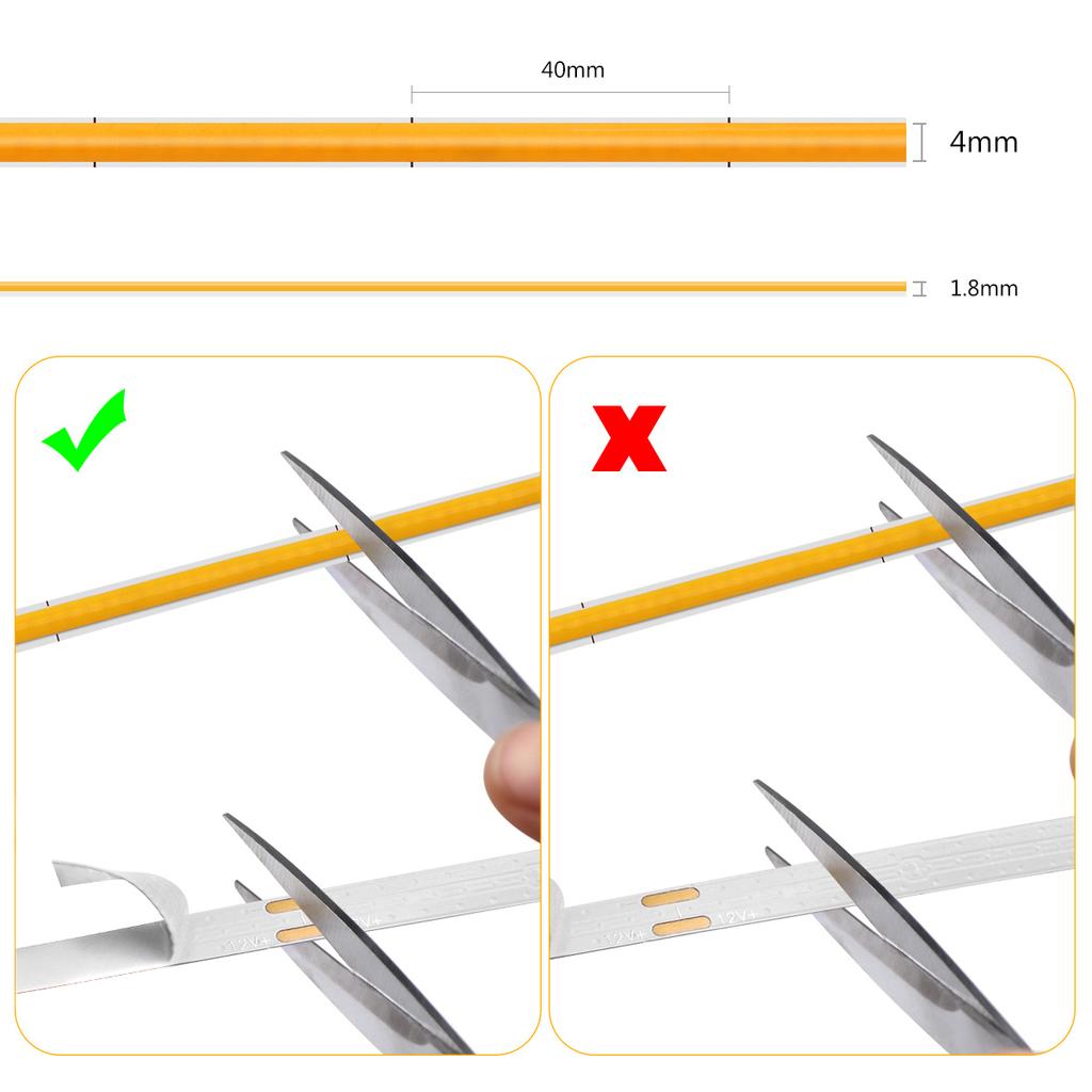 Светодиодная лента FCOB DC 12V Гибкая светодиодная лента 5мм 320 светодиодов/м Высокая плотность Линейное освещение 1м 2м 3м 4м 5м