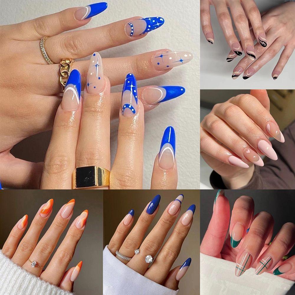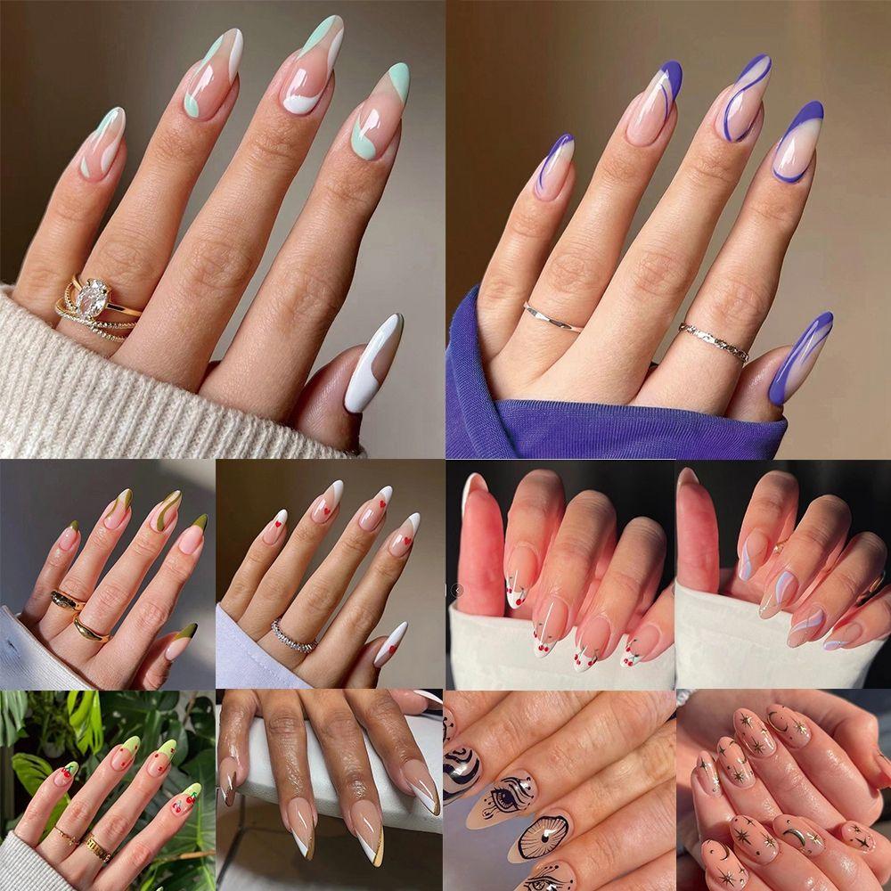 Fashion Manicure Tool Artificial Almond False Nails Nail Tips Wearable French Stiletto Fake Nails