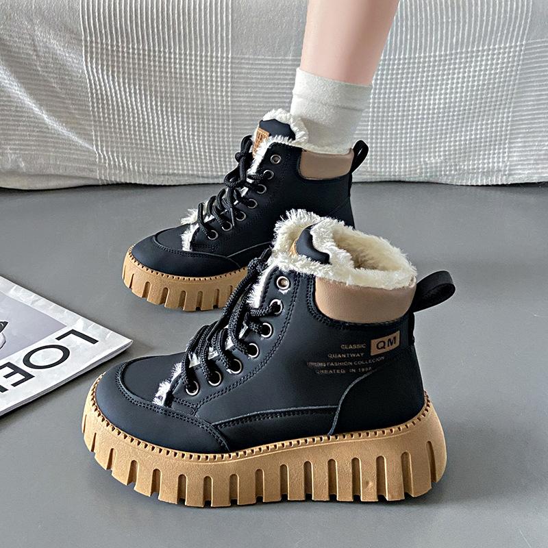 Высокие кеды женские новые зимние бархатные теплые универсальные студенческие большие хлопковые туфли маффины повседневные туфли прилив