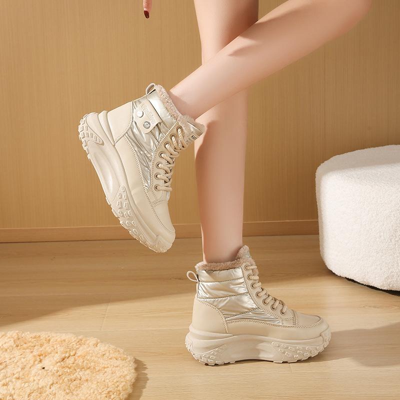 Флисовые высокие ветрозащитные ботинки для женской зимы, новые студенческие, теплые, повседневные, на платформе, хлопковые туфли