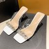 Крутые тапочки женские летние для улицы Новогодние прозрачные со стразами темпераментный толстый каблук хрустальные туфли на высоком каблуке женские