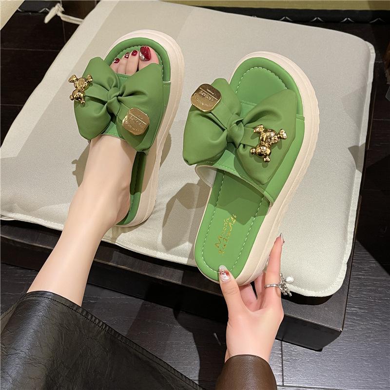 Новые летние тапочки, женская модная уличная обувь, толстая подошва с бантами, удобные тапочки на мягкой подошве
