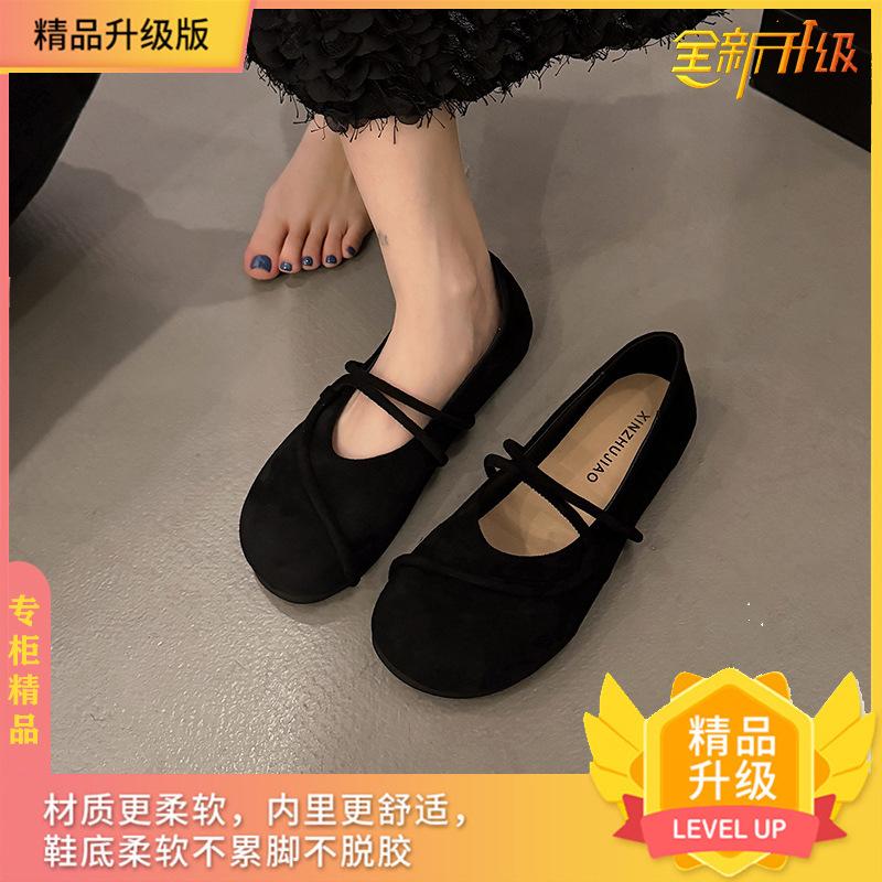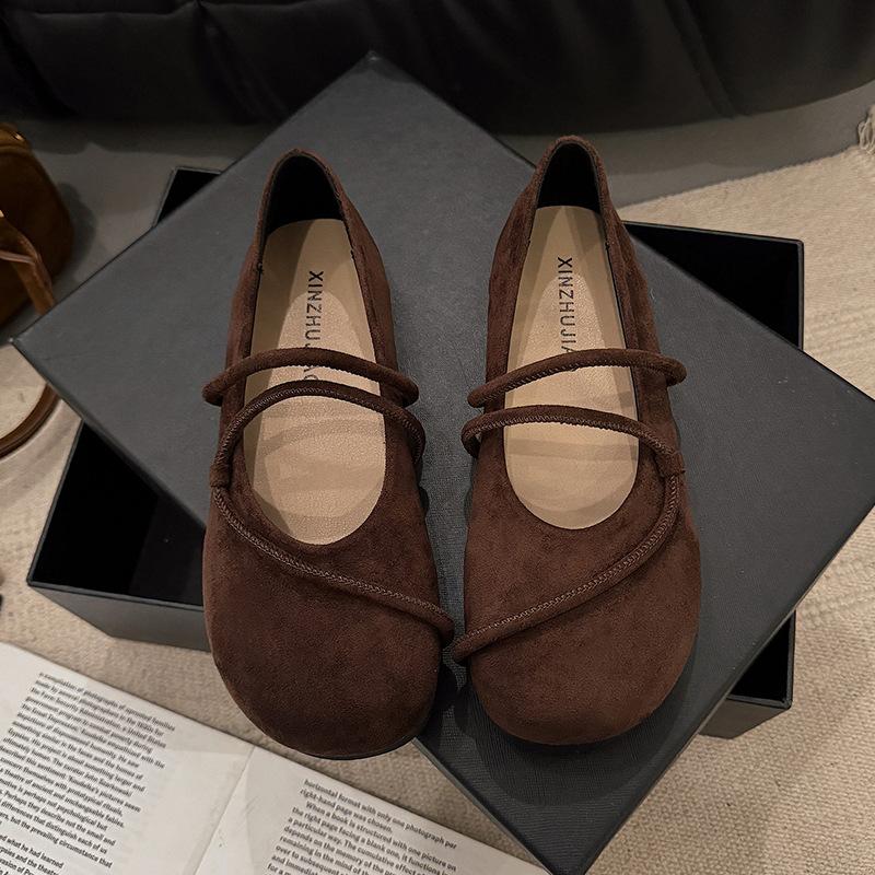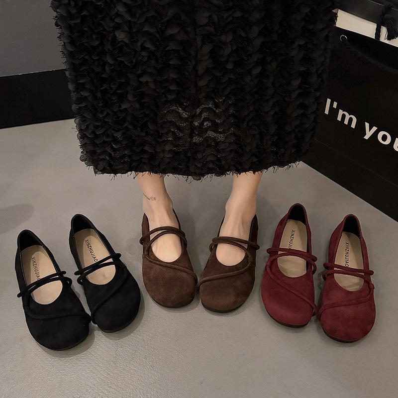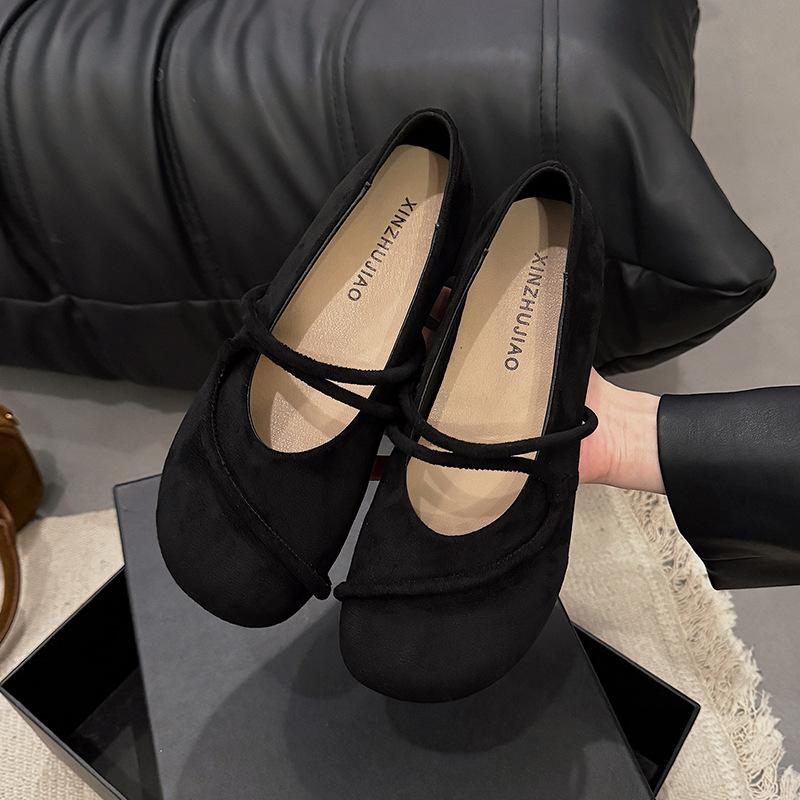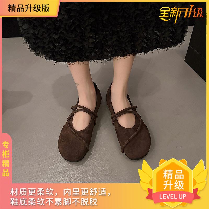 Одинарная обувь женская на плоской подошве 2025 весна новая с мелким вырезом универсальная с юбкой на одной педали замшевая ретро мягкая подошва