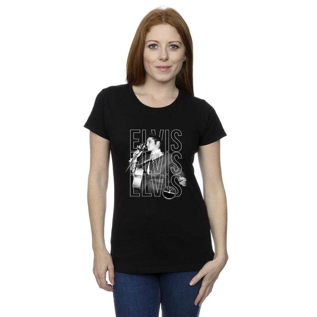 Elvis Womens/Ladies Triple Logo Portrait Cotton T-Shirt