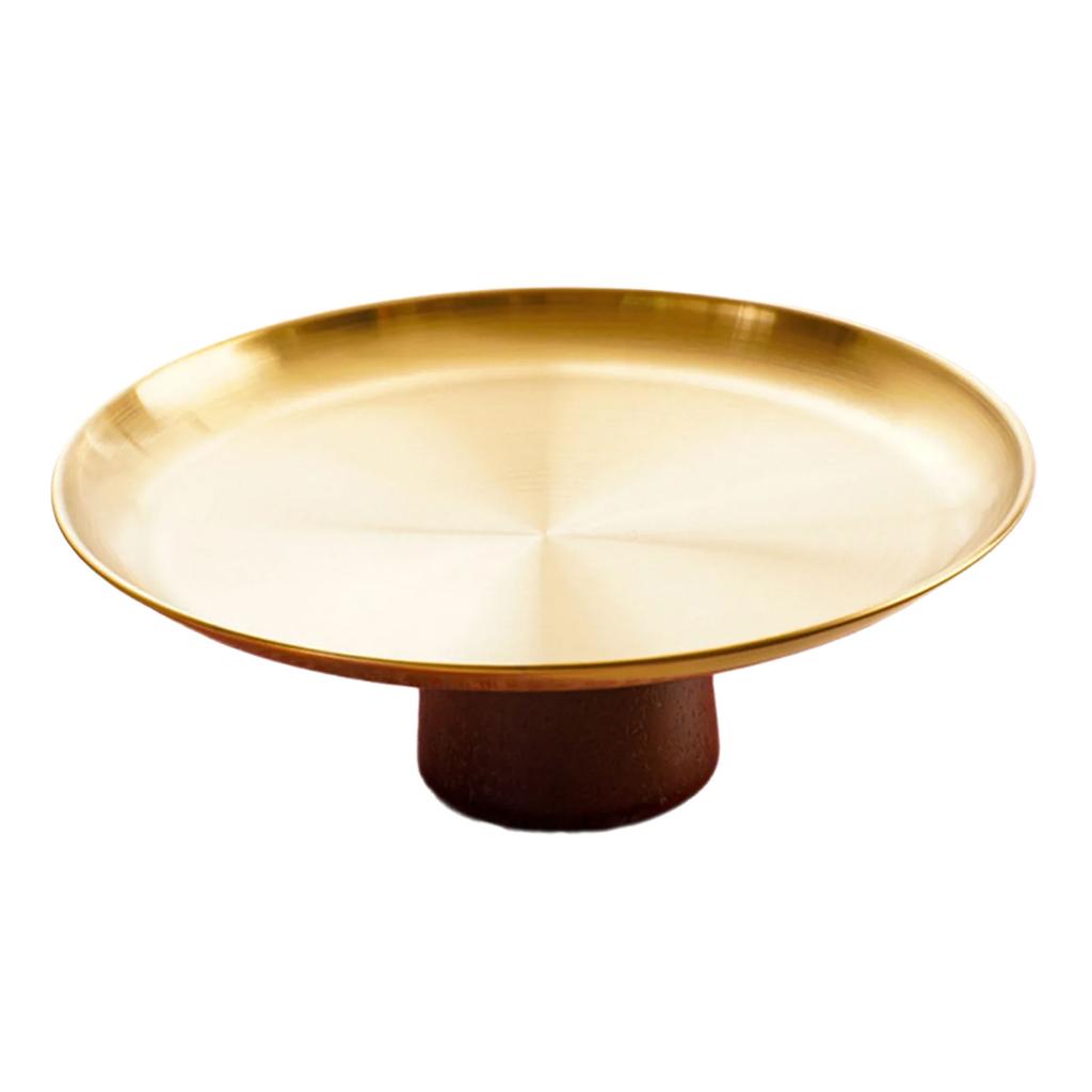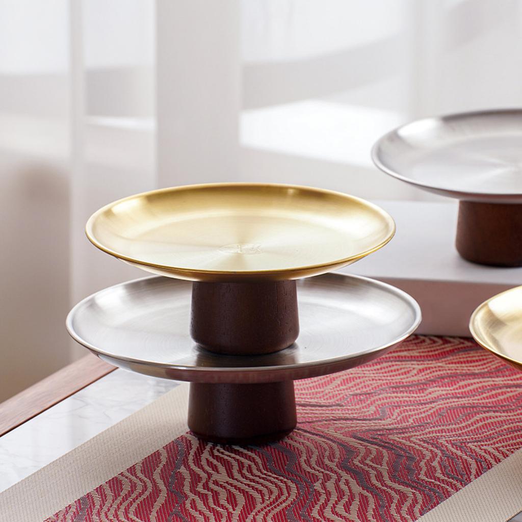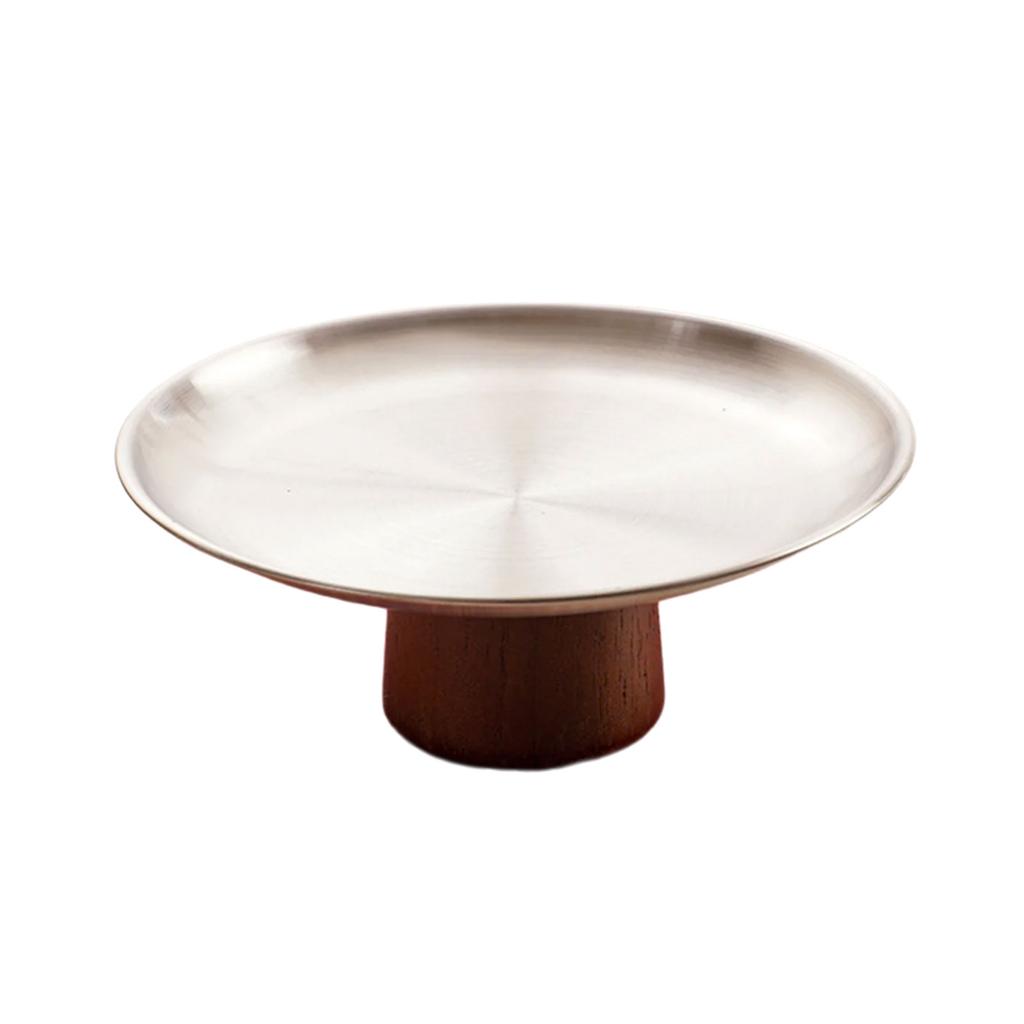 Металлический поднос для торта из нержавеющей стали, бытовая тарелка для фруктов, десертные блюда на высокой ножке с деревянной подставкой для стола