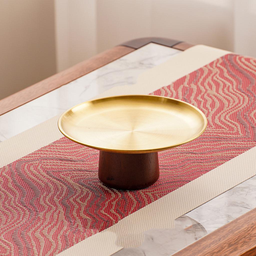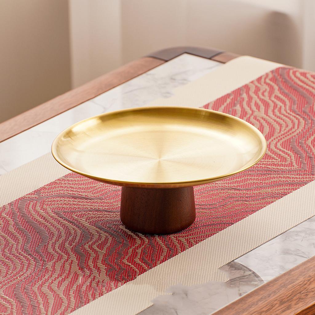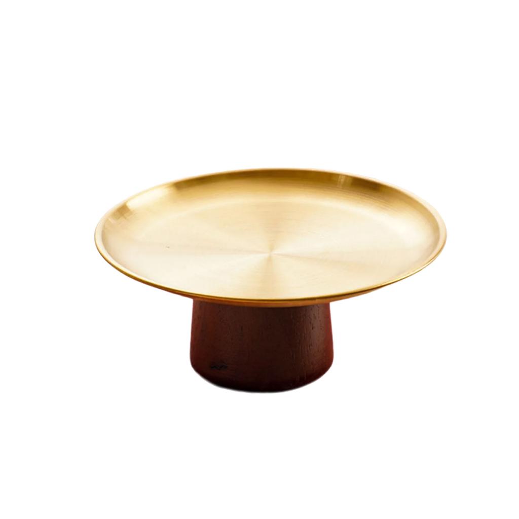 Металлический поднос для торта из нержавеющей стали, бытовая тарелка для фруктов, десертные блюда на высокой ножке с деревянной подставкой для стола