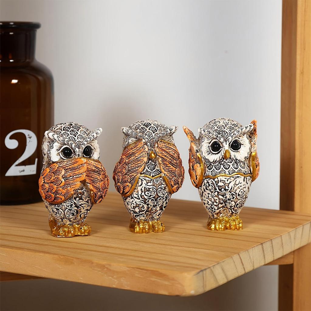 Дополните интерьер вашего дома тремя фигурками сов, украшенными привлекательным дизайном «Ни слышу, ни вижу, ни говорю», который добавит уникальный художественный штрих любому пространству.
