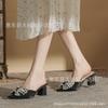Остроносые туфли на толстом каблуке, темпераментные полусабо, новинка 2025 года, с бантом из страз, на высоком каблуке, крутые шлепанцы