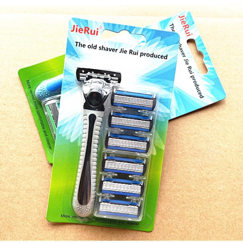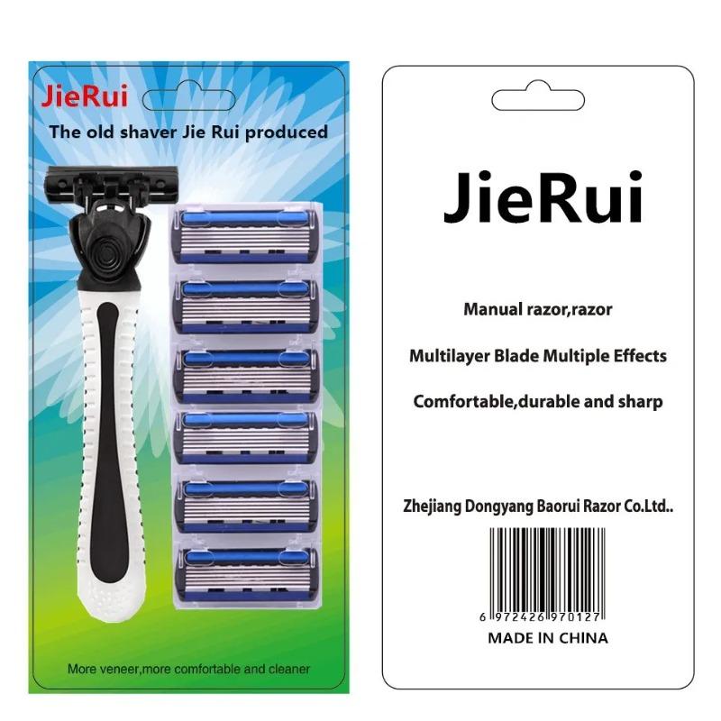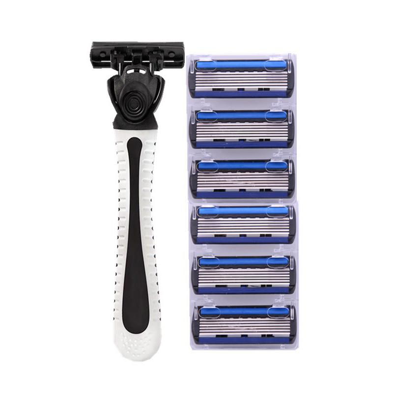 Лезвие для бритья из нержавеющей стали, 6 слоев, ручная бритва для мужчин, 1 держатель для лезвий, 6 лезвий