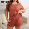 GMXIA Пижама женская летняя большого размера, однотонная, свободная, повседневная, с короткими рукавами и шортами, двухпредметный домашний костюм