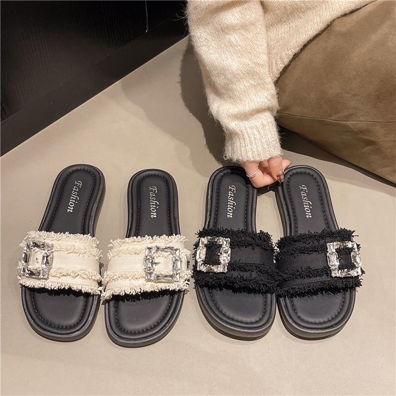 Пляжные сандалии на плоской подошве новые шлепанцы женские летние стразы мода