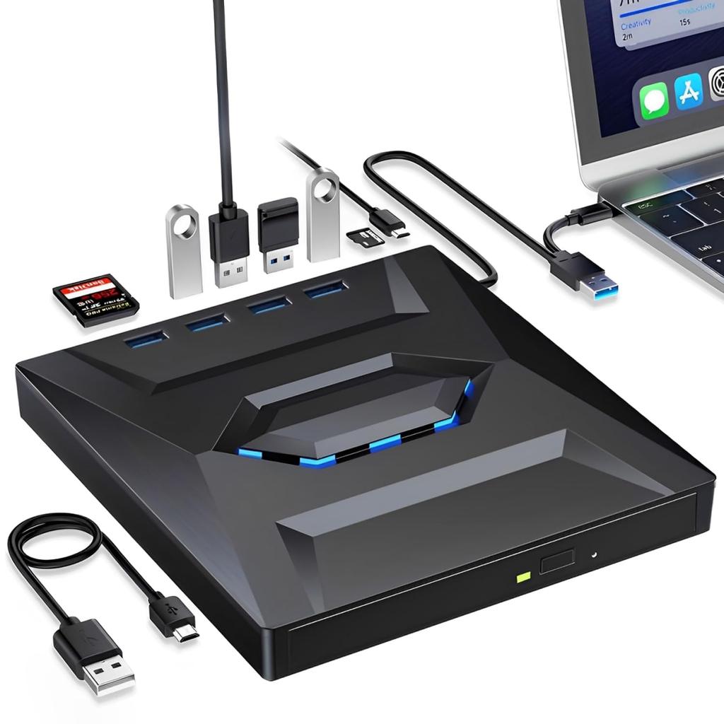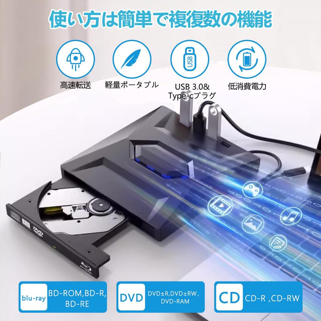 💽【Тихая работа/питание от шины】Хотите работать эффективно, наслаждаясь тишиной вокруг? Наш внешний Blu-ray привод имеет функцию тихой работы, поэтому вам не нужно беспокоиться о шуме, когда вы концентрируетесь или отдыхаете.. Кроме того, конструкция с питанием от USB устраняет необходимость в дополнительной проводке или внешнем питании.. Легкий и тонкий дизайн делает его очень удобным для переноски и использования.