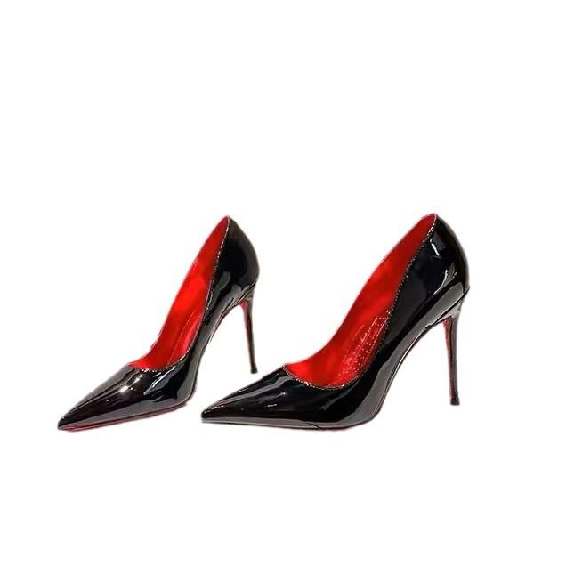 Женские туфли на высоком каблуке с красной подошвой, новые черные сексуальные профессиональные лакированные туфли-лодочки с острым носком, туфли-стилет для женщин