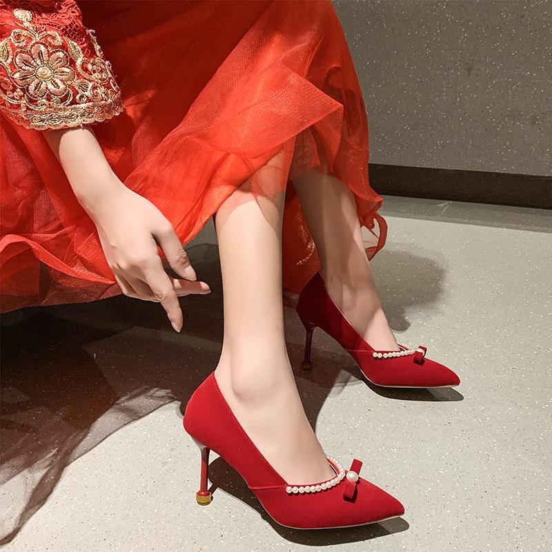 Китайские свадебные туфли весна и осень новые туфли для показа свадебное платье двойной носки свадебные туфли свадебные красные туфли на высоком каблуке