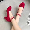 Женские туфли на высоком каблуке весна и осень новая мода ремешок с пряжкой на одно слово толстый каблук одинарные туфли замшевые свадебные туфли для тоста туфли невесты