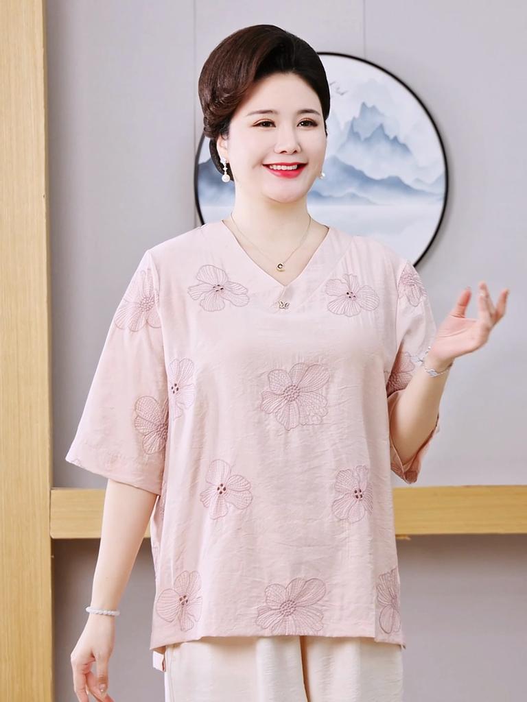 Большие размеры 3XL-8XL Повседневные блузки для женщин Топы Свободные Винтажные Оверсайз Рукав до локтя Рубашка Летняя одежда