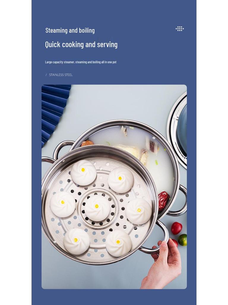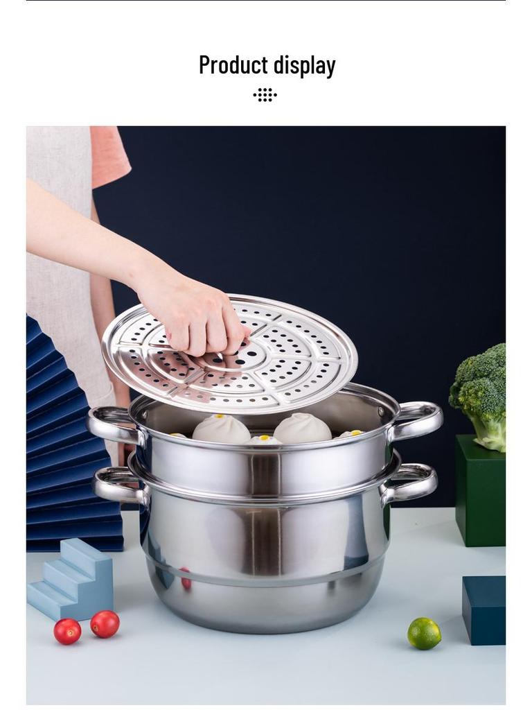 Кастрюля-пароварка из нержавеющей стали с двойной решеткой - Большая вместимость для варки и приготовления на пару, Идеальный подарок на Праздник середины осени или Национальный день