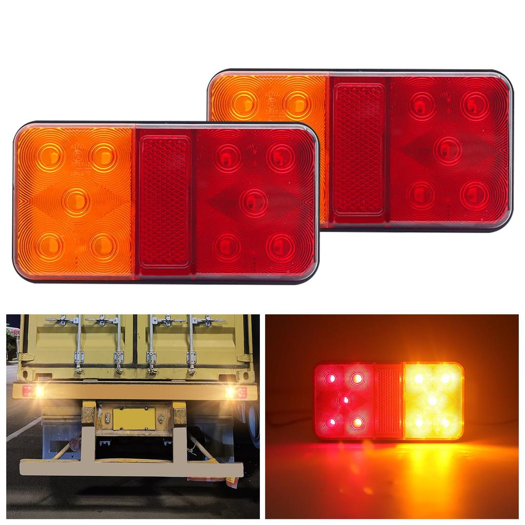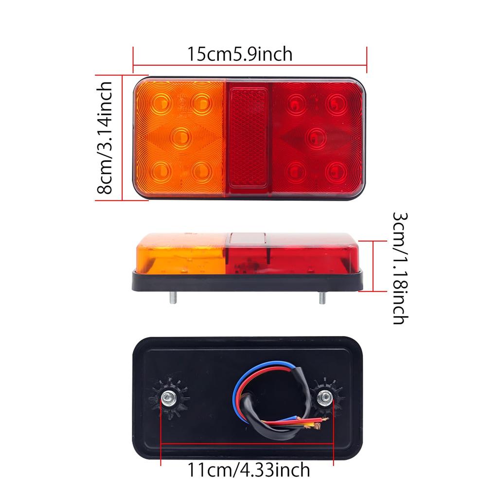 [Многофункциональные светодиодные задние фонари] Комплект из 2 левого и правого, размер (ок.): 16см x 8см (длина х ширина), рабочее напряжение: 12В, материал: АБС-пластик, класс водонепроницаемости: IP67, цвет света: красный + желтый, может использоваться как габаритный огонь, стоп-сигнал и указатель поворота