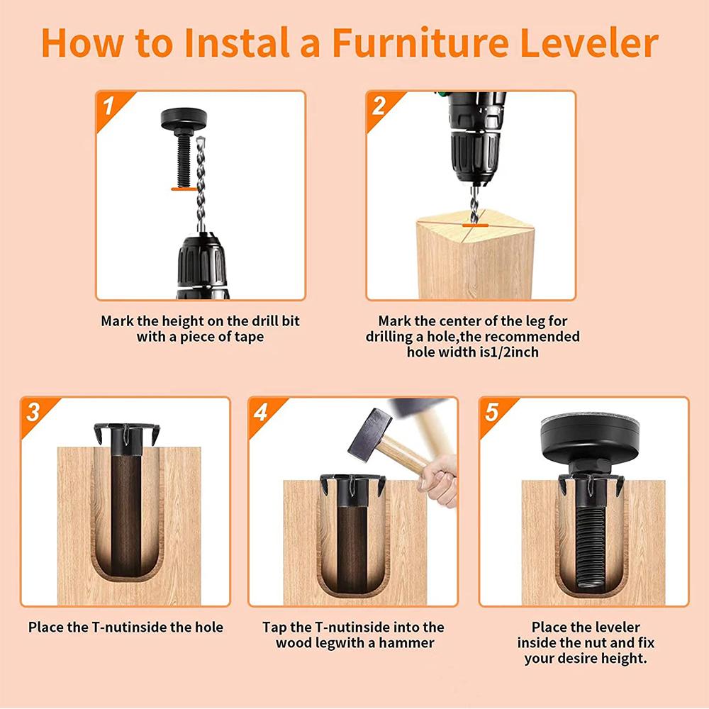 4 шт. Регулируемые ножки с резьбой 3/8" для столов, стульев, шкафов, диванов