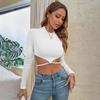 Новая облегающая ультракороткая маленькая трикотажная футболка с высоким воротом, топ с длинными рукавами