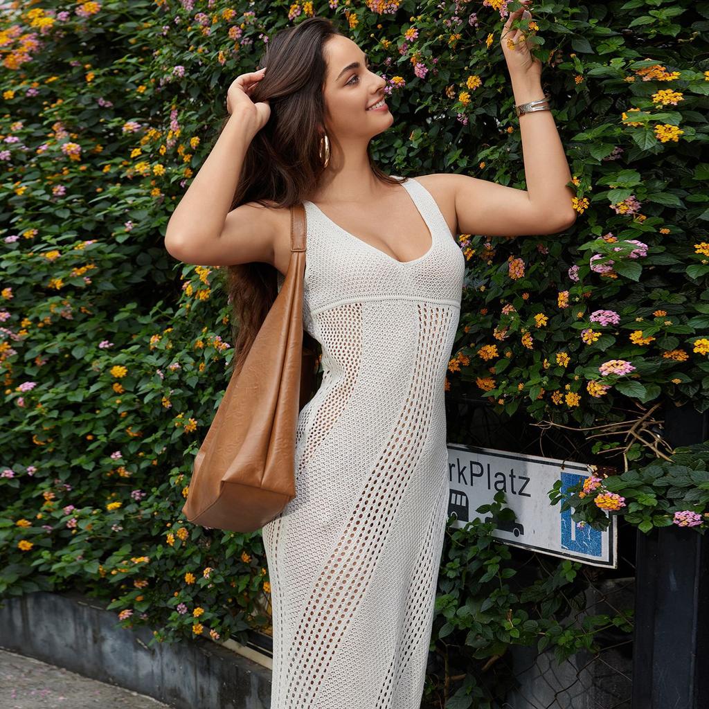 Новая вязаная крючком сексуальная ажурная пляжная блузка, юбка, отпускная длинная юбка, платье-бикини