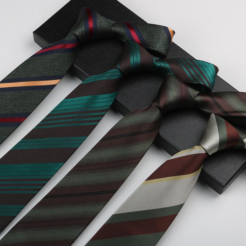 Деловой галстук Платье рубашка Профессиональный рабочий костюм В полоску Высококлассный Зеленый Коричневый Мужской Ручной стиль