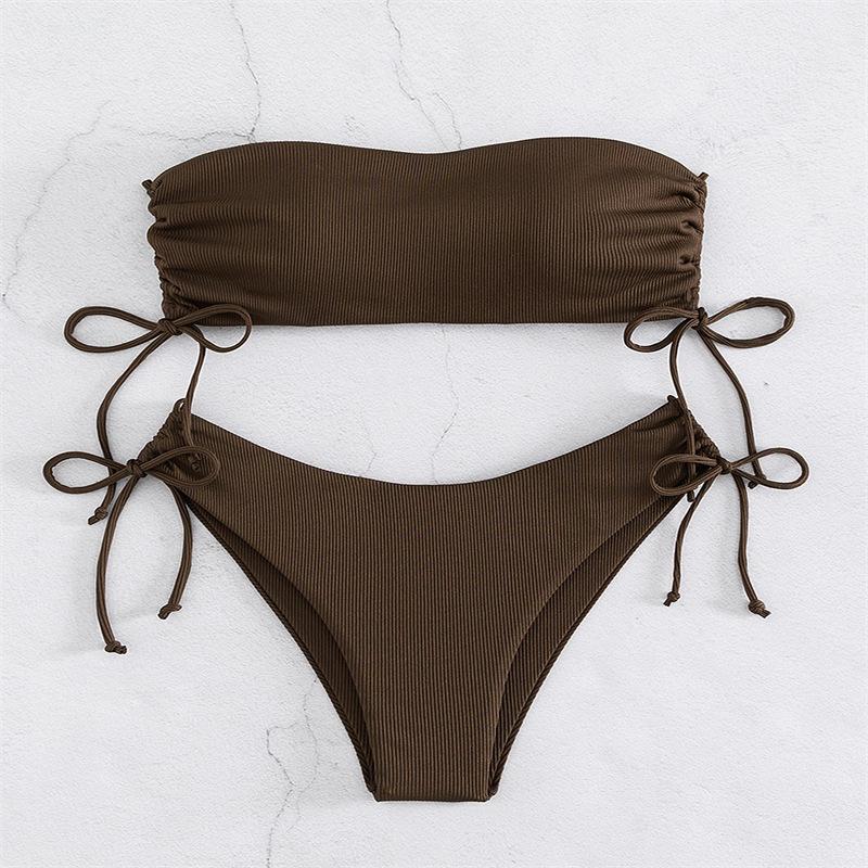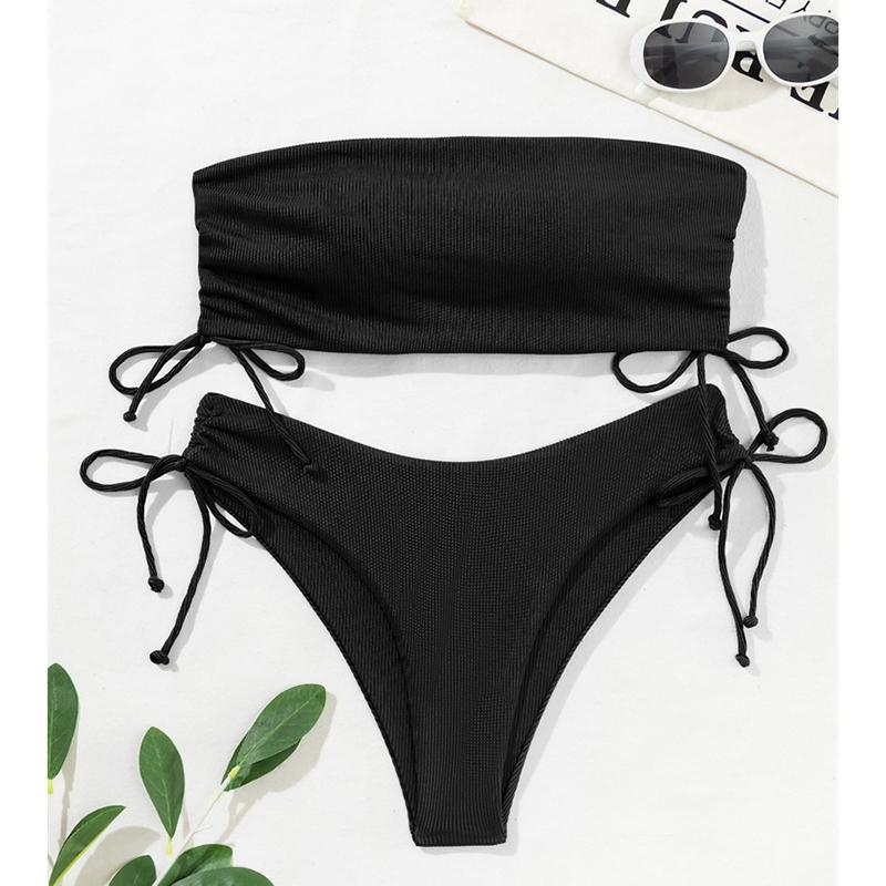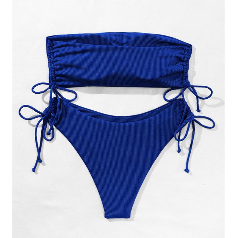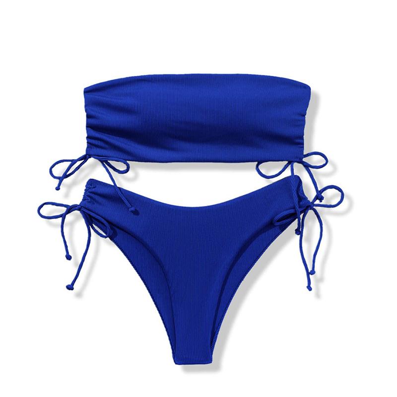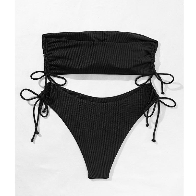 Сексуальный комплект бикини из 2 предметов без бретелек и с открытой спиной для женщин, однотонный раздельный купальник с высокой талией, пляжный, новый летний купальный костюм