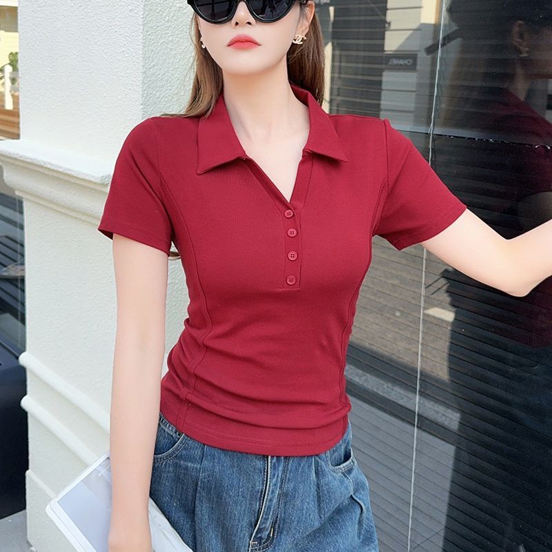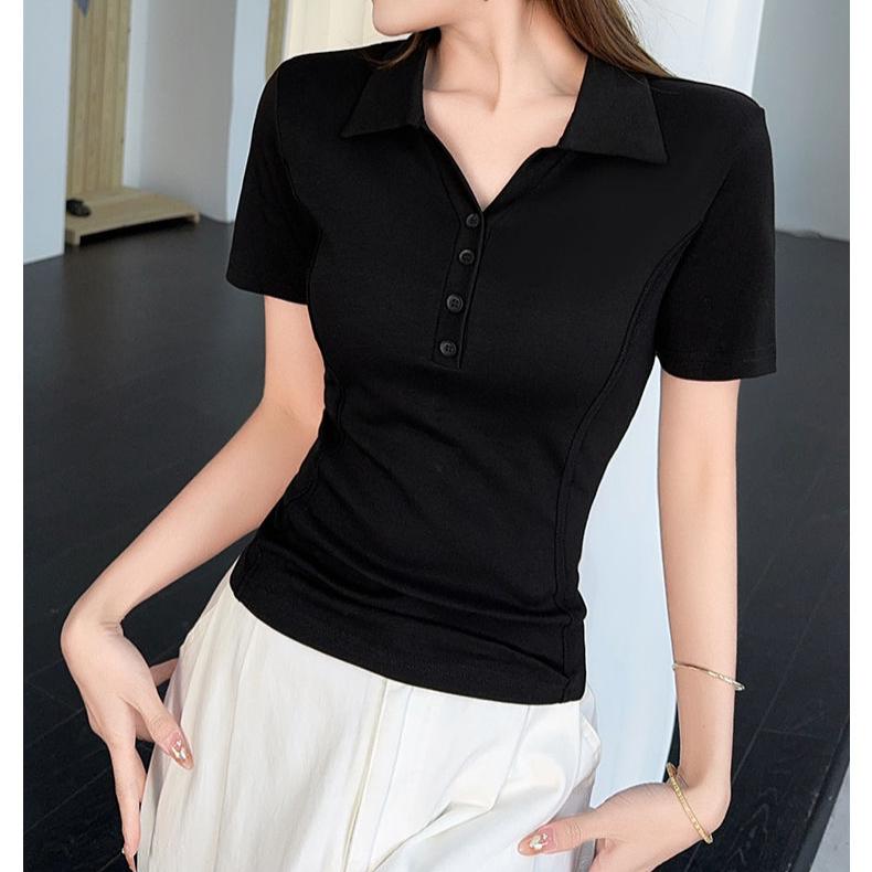 Летняя женская футболка поло с коротким рукавом, облегающий модный топ, повседневная рабочая одежда