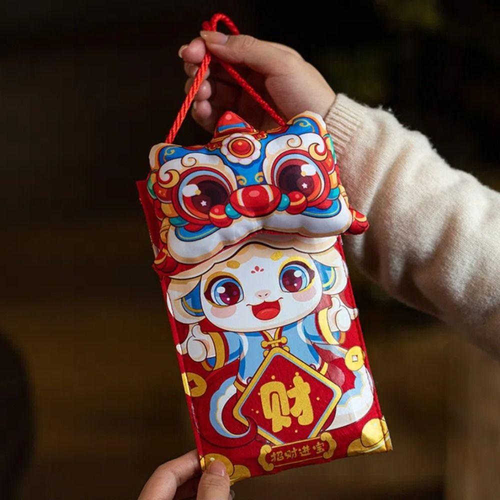 Наилучшие пожелания Карман для денег Цепочный дизайн Парчовый красный конверт Мешочек с новогодним благословением Подарки для вечеринки