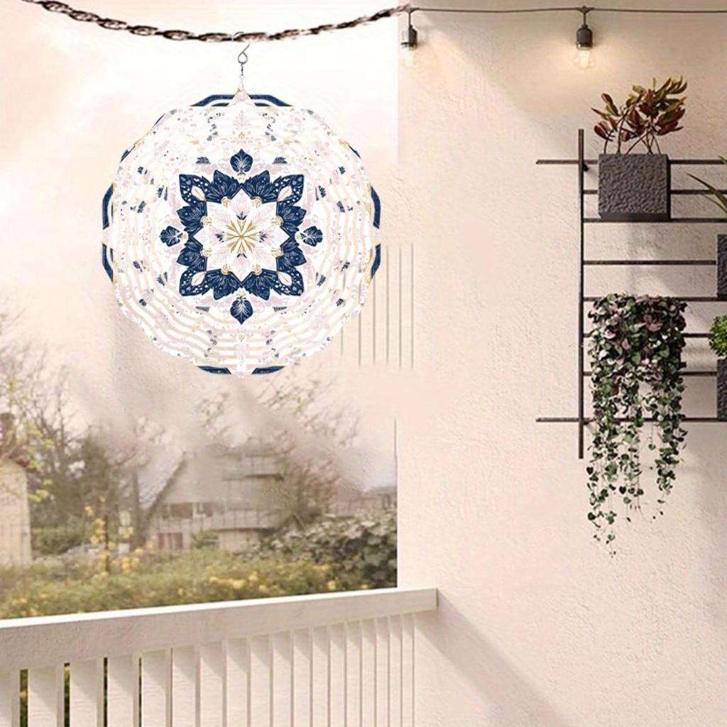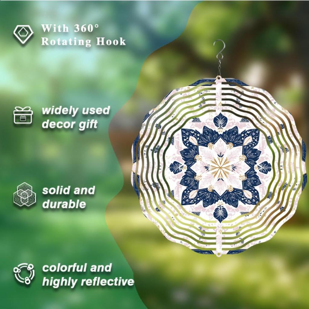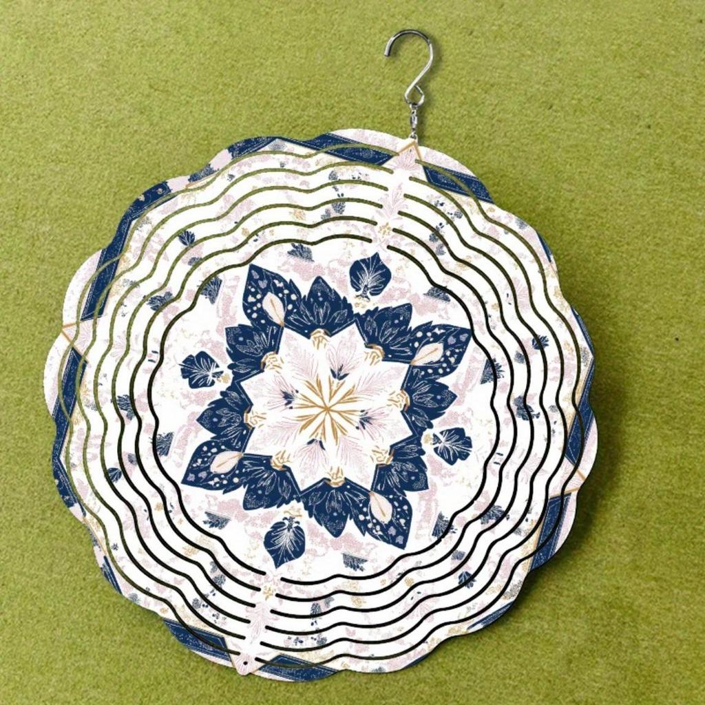 Винтажный синий цветочный ветряк 25 см, металл лазерной резки, подвесной декор, крючок с вращением на 360 градусов для сада, помещения, улицы, все сезоны, Хэллоуин, День благодарения