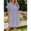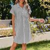 YYFS Женская мода лето весна полосатый принт короткий рукав поло воротник свободная талия повседневные платья