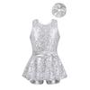 Детский костюм для выступлений, гимнастический купальник с пайетками, крестообразная спинка, без рукавов, платье с бантом, костюм для джазового танца с повязкой для волос