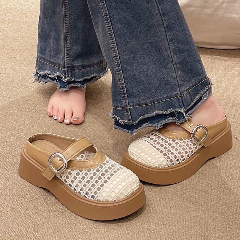 Полые плетеные сетчатые тапочки на платформе 2025 однословный ремешок одинарная обувь сандалии женские туфли Мэри Джейн с неглубоким вырезом