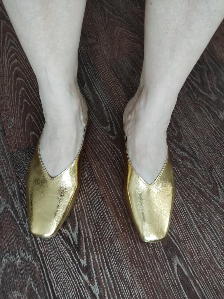 Неплохие балетки. Легкие, яркие. Пришли немного помятые, вставила вкладыши для обуви, до лета примут красивую форму. На 34разм заказала 35, подошли хорошо