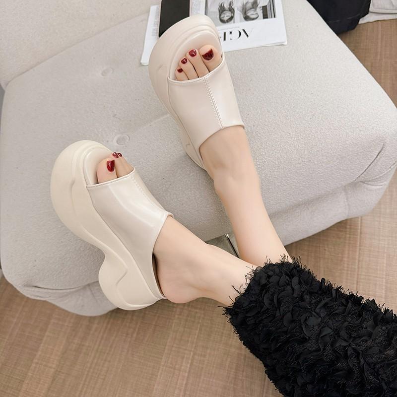 Маффиновые толстоподошвенные крутые тапочки для женской летней носки новая ниша маленький рост пляжные на одной перемычке