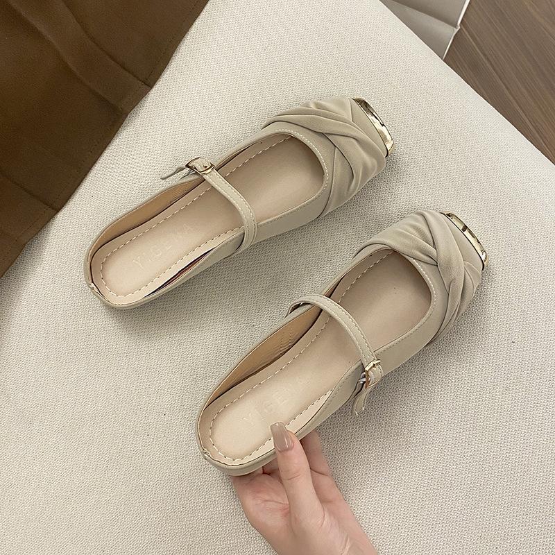 Металлические квадратные носки на плоском каблуке, полушлепанцы с закрытой пяткой, женские, весна-лето 2025, новые, на мягкой подошве, обувь Мэри Джейн, туфли