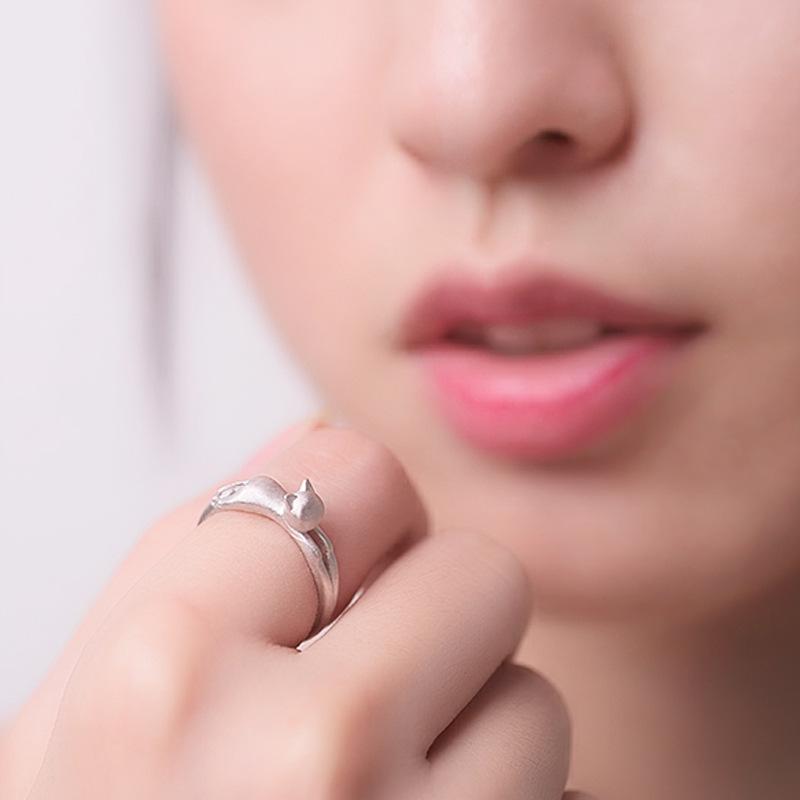 Корейская версия Ювелирные изделия Женское матовое кольцо с котенком Открытое кольцо Ювелирные изделия