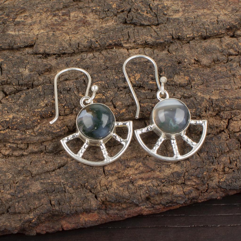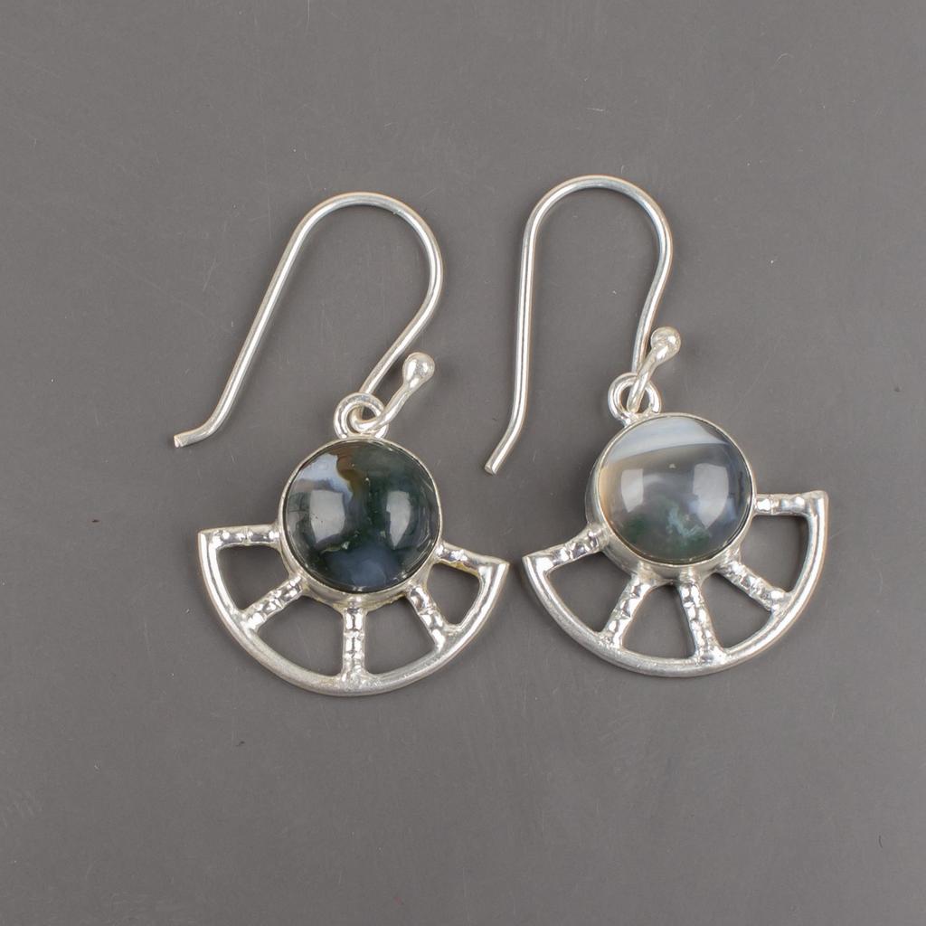 Серьги из цельного серебра 925 пробы с моховым агатом, серьги с драгоценными камнями ручной работы, подарки жене, абсолютно новые серьги