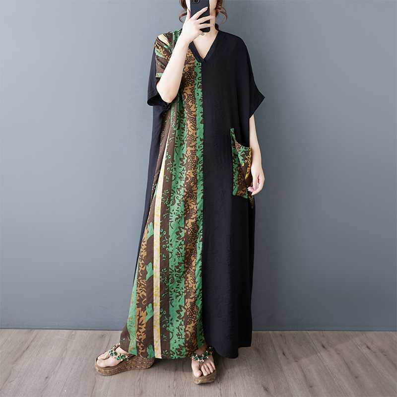 Летнее тонкое хлопково-льняное платье с V-образным вырезом и короткими рукавами для женщин — купить товар онлайн с бесплатной доставкой по всему миру!