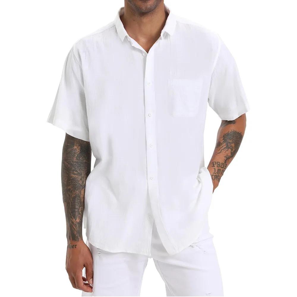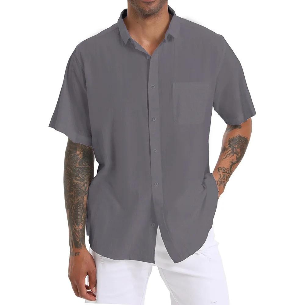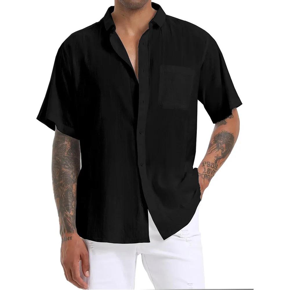 Повседневная рубашка с коротким рукавом для мужчин, однотонная, с лацканами, легкая, дышащая, стильная, мужские топы на пуговицах для повседневной носки