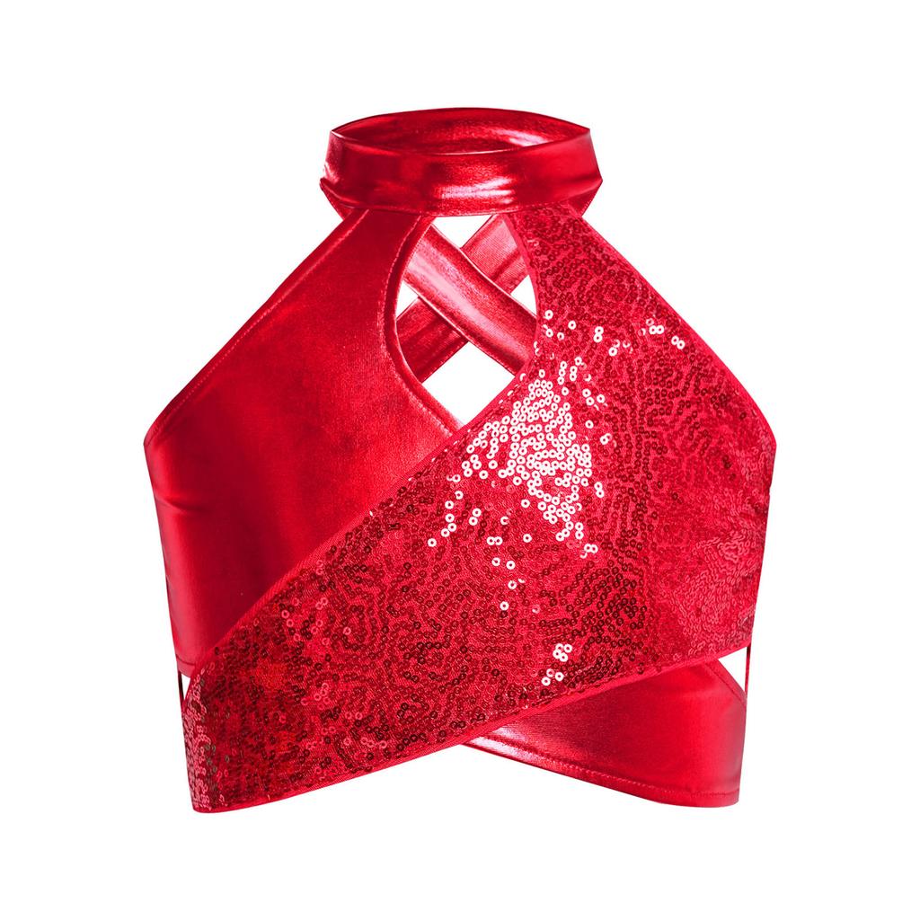 Девочки Танцевальный Кроп-Топ Блестящие Пайетки Металлический Дизайн Перекрещенная Спинка с Вырезом Костюм для Латиноамериканских и Бальных Танцев