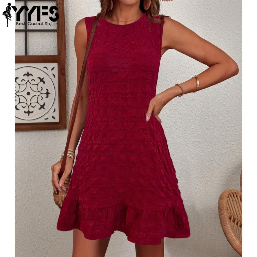 YYFS Женская мода лето весна однотонный принт без рукавов с круглым вырезом со средней талией повседневные платья