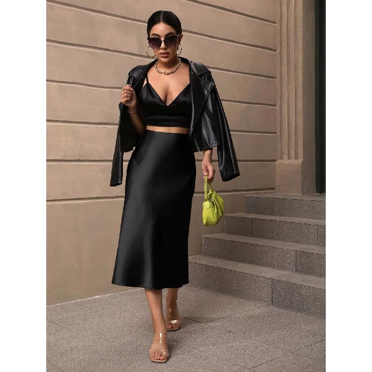 Элегантная атласная юбка А-силуэта для осени и зимы, новая однотонная юбка А-силуэта средней длины для детей